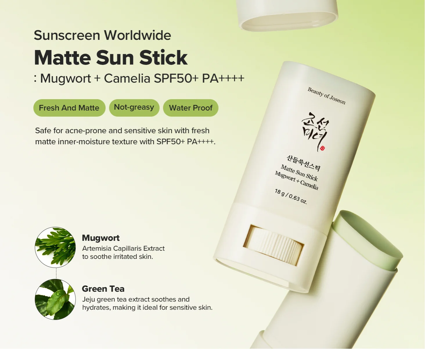 Beauty of Joseon Matte Sun Stick: Mugwort + Camellia (18g) – SPF 50 PA++++, Korean Sunscreen