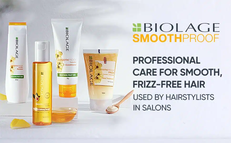 Frizzy hair is commonly tough to manage in wet weather. impressed by natures water resistant camelia, Biolage Smoothproof Conditioner gets eliminate kink and excess volume with progressive formulas inspired by nature. power-driven by Biomatch technology, that mimics the waterproof properties of the camelia Flower, for curly hair, the conditioner provides humidness management and anti-frizz smoothness even in 97 humidness.