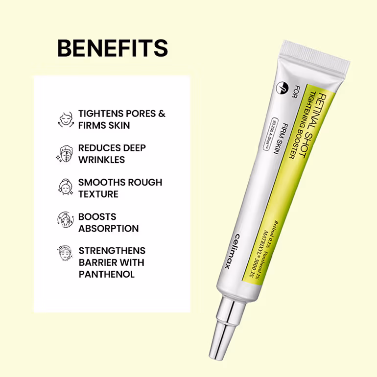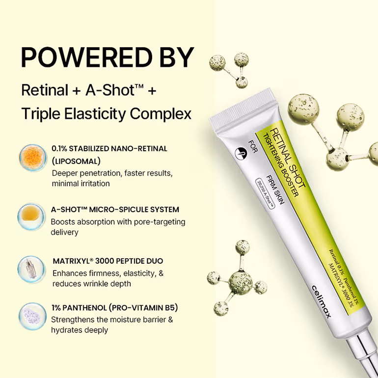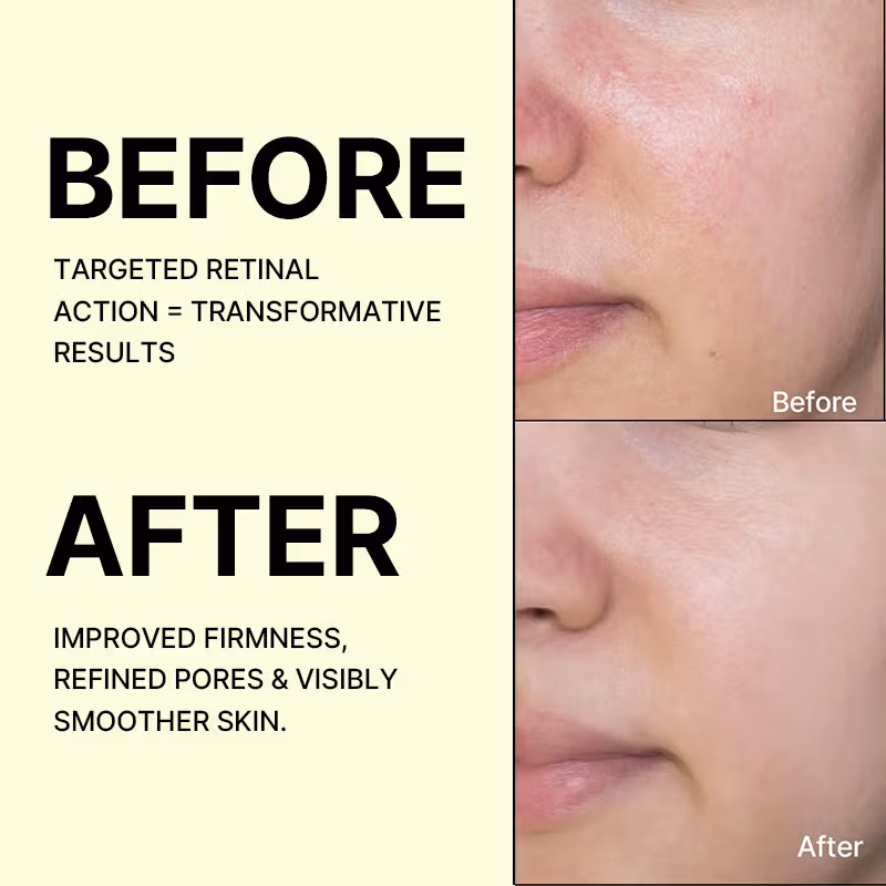 - Retinal firms the skin and refines texture, helping reduce fine lines and promote a smoother, more lifted appearance
