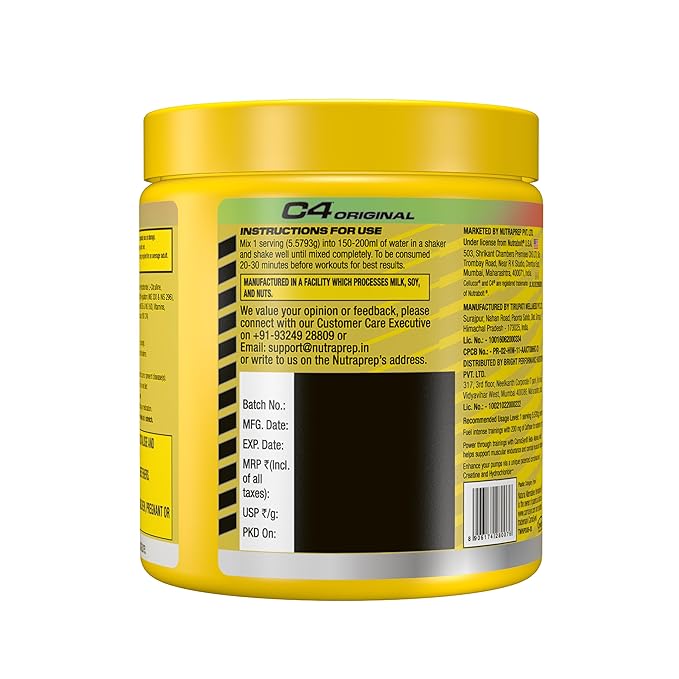 Cellucor C4 Original – Explosive Energy. Bigger Pumps. Better Endurance. Level up your training with the World’s Number 1 pre workout C4 Original, powered by 200mg Caffeine for explosive energy and 1.6g CarnoSyn Beta-Alanine to boost endurance and fight fatigue. With 1g L-Citrulline for improved blood flow and fuller pumps, plus 1g of Creatine Hydrochloride (HCl) for increased strength and power, C4 helps you crush every session from start to finish. Trusted by millions worldwide, C4 delivers unmatched performance, clean energy, and incredible sugar-free flavor—making your pre-workout ritual both powerful and delicious. Explosive energy. Better endurance. Bigger pumps. Superior performance. Cellucor C4 Original Hits Harder!