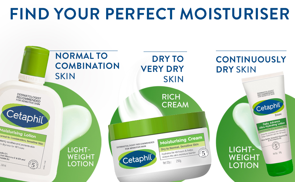 “Cetaphil Moisturising Lotion is specially formulated non-greasy lotion designed to retain skin’s natural moisture barrier. It is infused with natural ingredients such as Niacinamide, Panthenol, Glycerin, Avocado and Sunflower Oil to lock in skin moisture and protect the skin. Ideal for Dry to Normal Sensitive Skin, Cetaphil Moisturising Lotion is • Paraben-Free • Sulphate Free • Fragrance-Free
