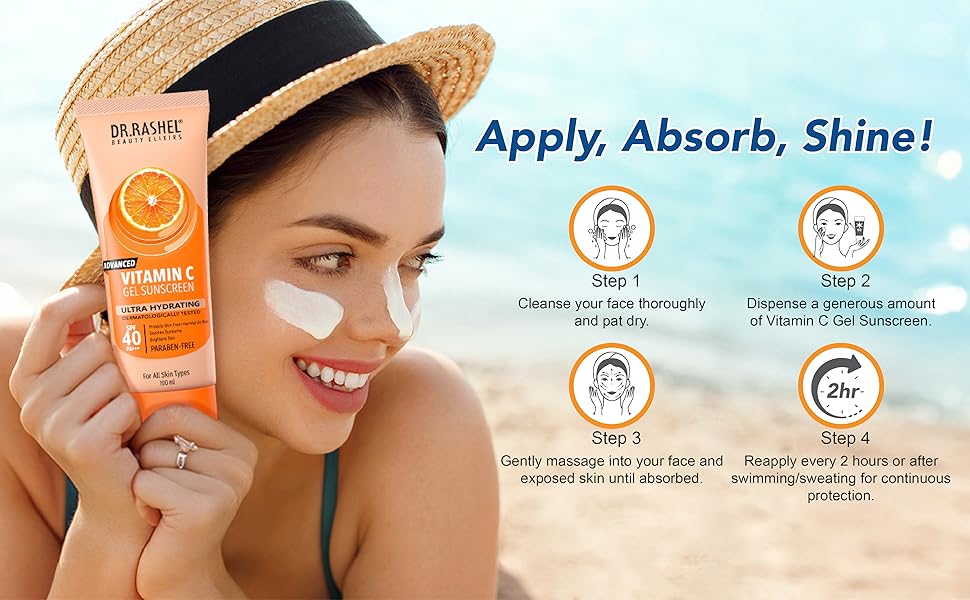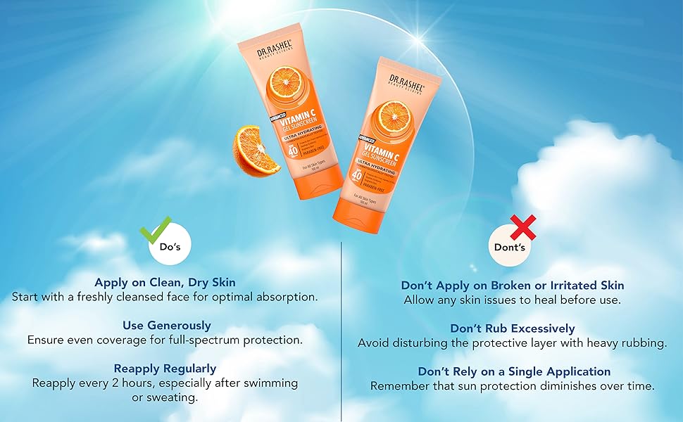 DR.RASHEL Vitamin C Sunscreen SPF 40 PA+++ Gel Ultra Hydrating Protects Your Skin From UV Rays 100ml