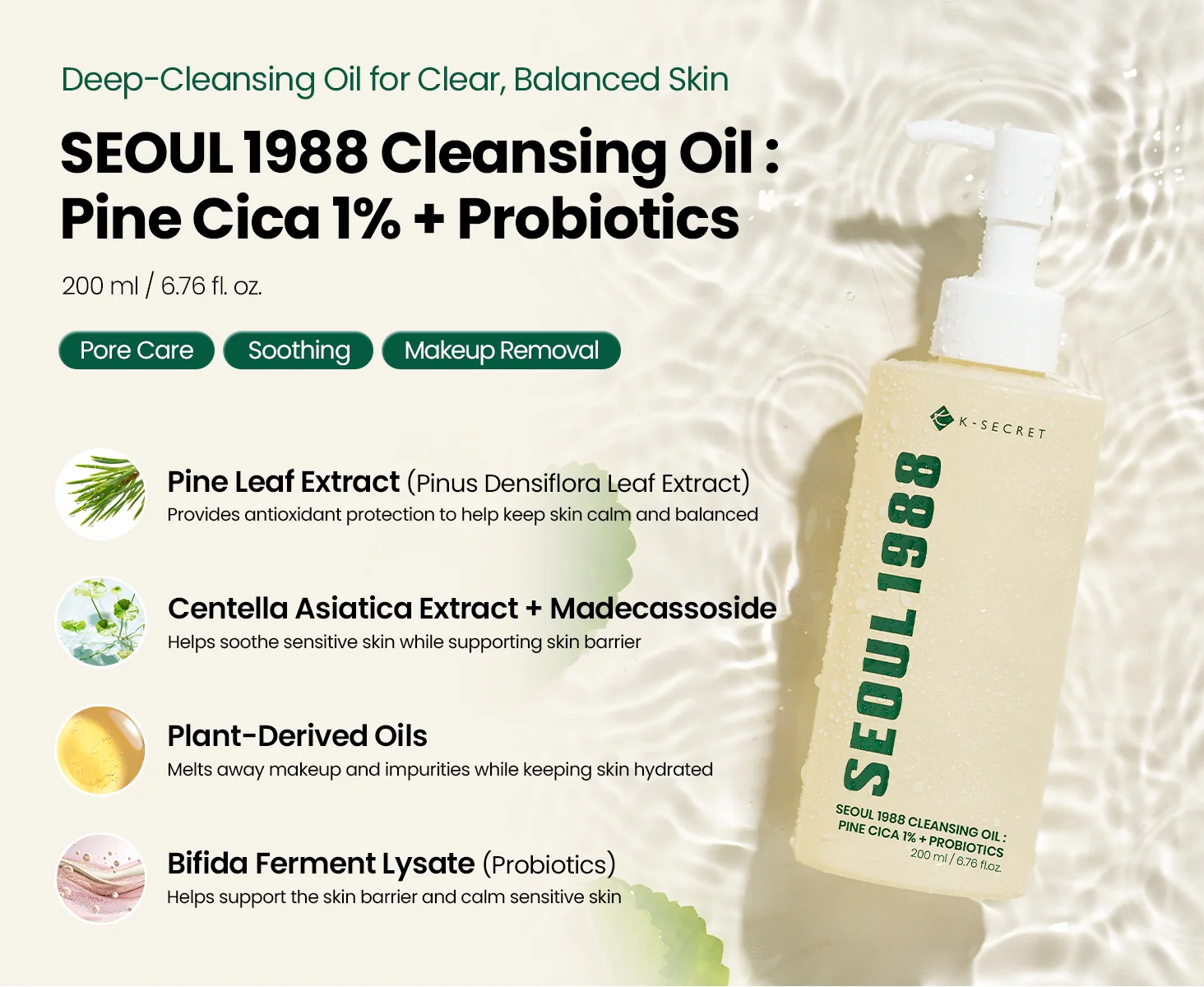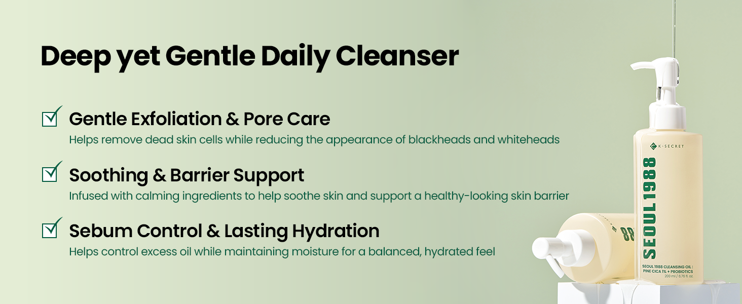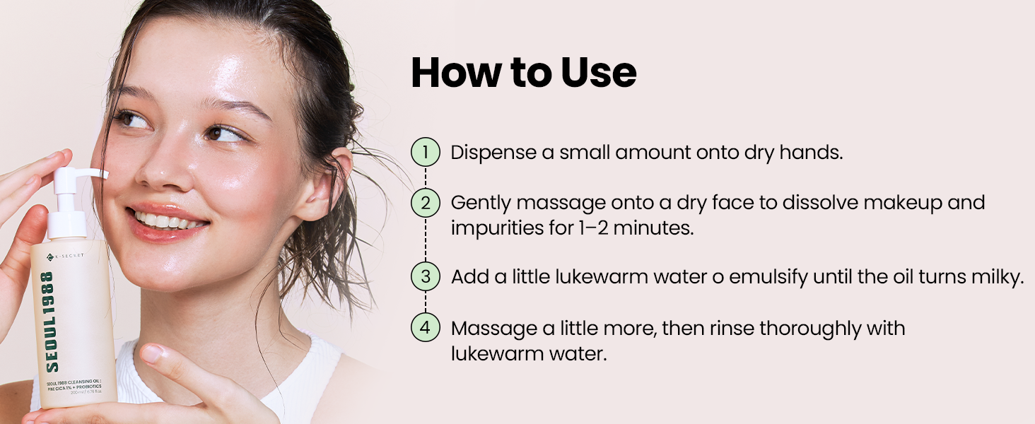 The K-Secret Seoul 1988 Cica Cleansing Oil is a first-step cleanser that dissolves makeup, sunscreen, excess sebum, and deep pore impurities — all without stripping the skin’s natural moisture barrier. Born from K-Beauty’s celebrated double-cleansing tradition, it blends time-tested Korean botanical wisdom with modern dermatological science.