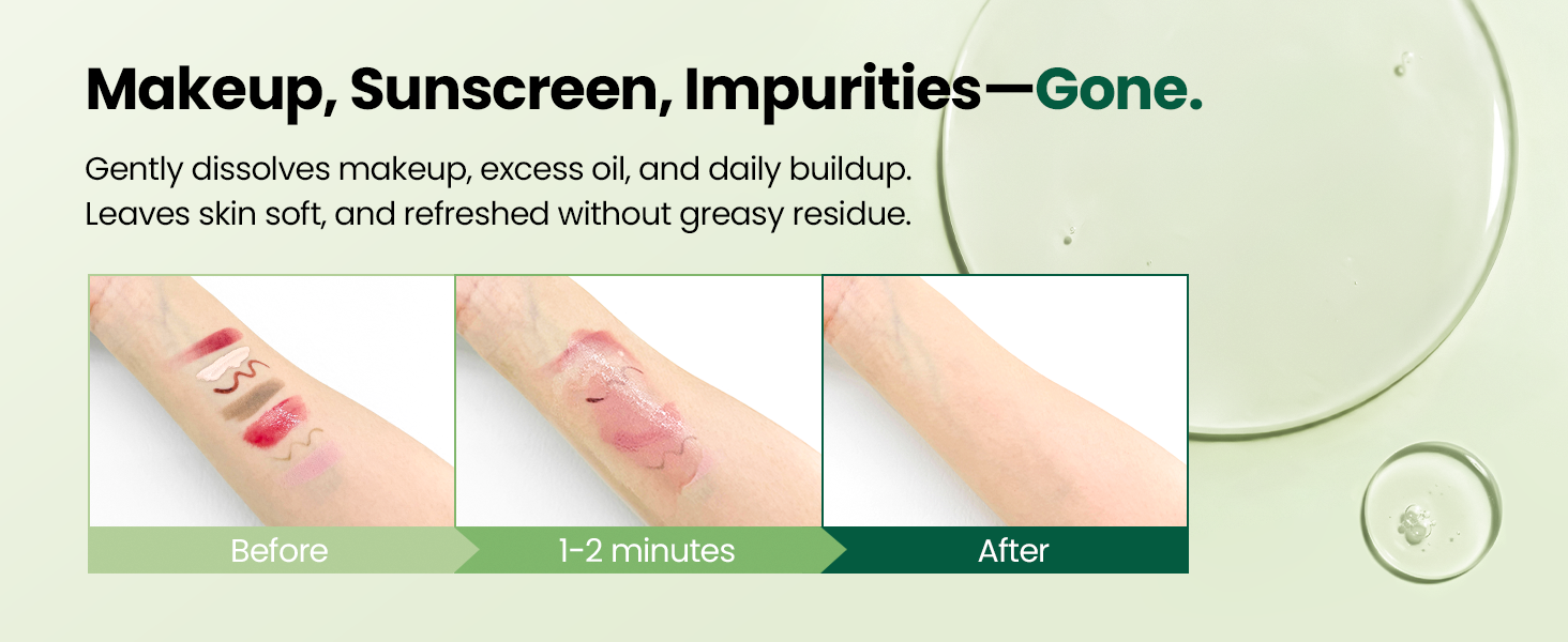 • Deep Pore Cleansing: Dissolves waterproof makeup, sunscreen, excess oil & impurities instantly