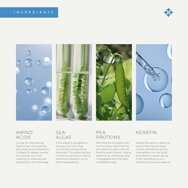 Nourishes and Hydrates: Sea Algae and Pea Proteins provide essential nutrients and moisture, revitalizing dry and brittle hair.