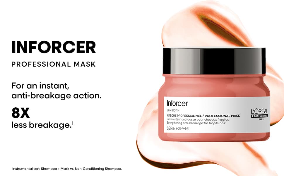 Expert Care mask for weak, brittle hair to reinforce strength & reduce split ends. Enriched with the power of Vitamin B6 and Biotin, L’Oréal Professionnel Serie Expert Inforcer Strengthening Hair Mask reduces hair breakage and split ends, leaving hair stronger and easier to detangle.