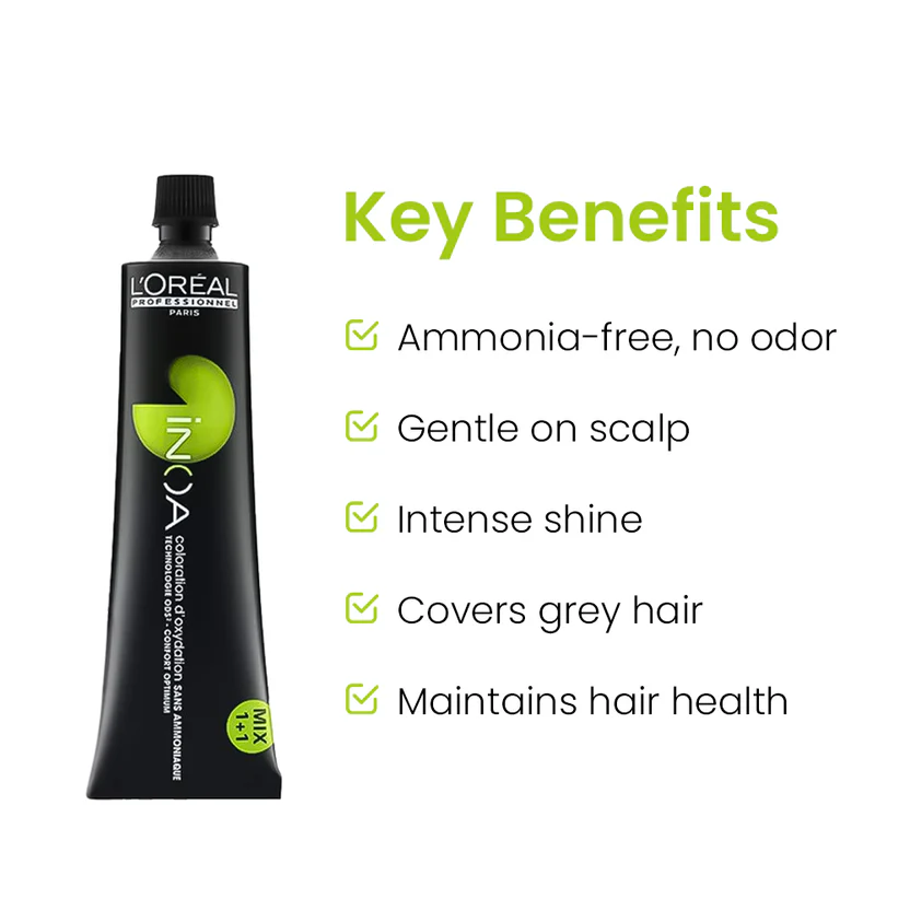 INOA is a professional oil-based hair color system designed for superior coverage and lasting results. This 60gm shade 5.3 (Light Brown) delivers rich, dimensional color with exceptional shine and smoothness. The ammonia-free formula minimizes scalp irritation while providing up to 100% gray coverage. INOA’s unique oil-based technology ensures optimal color penetration and vibrancy, making it ideal for salon professionals seeking reliable, fade-resistant color with a luxurious finish.