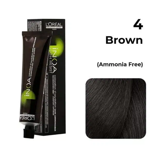 Elevate your hair color experience with L’Oréal Professional Paris INOA Ammonia-free Permanent Hair Color in shade 4 (Natural Brown).