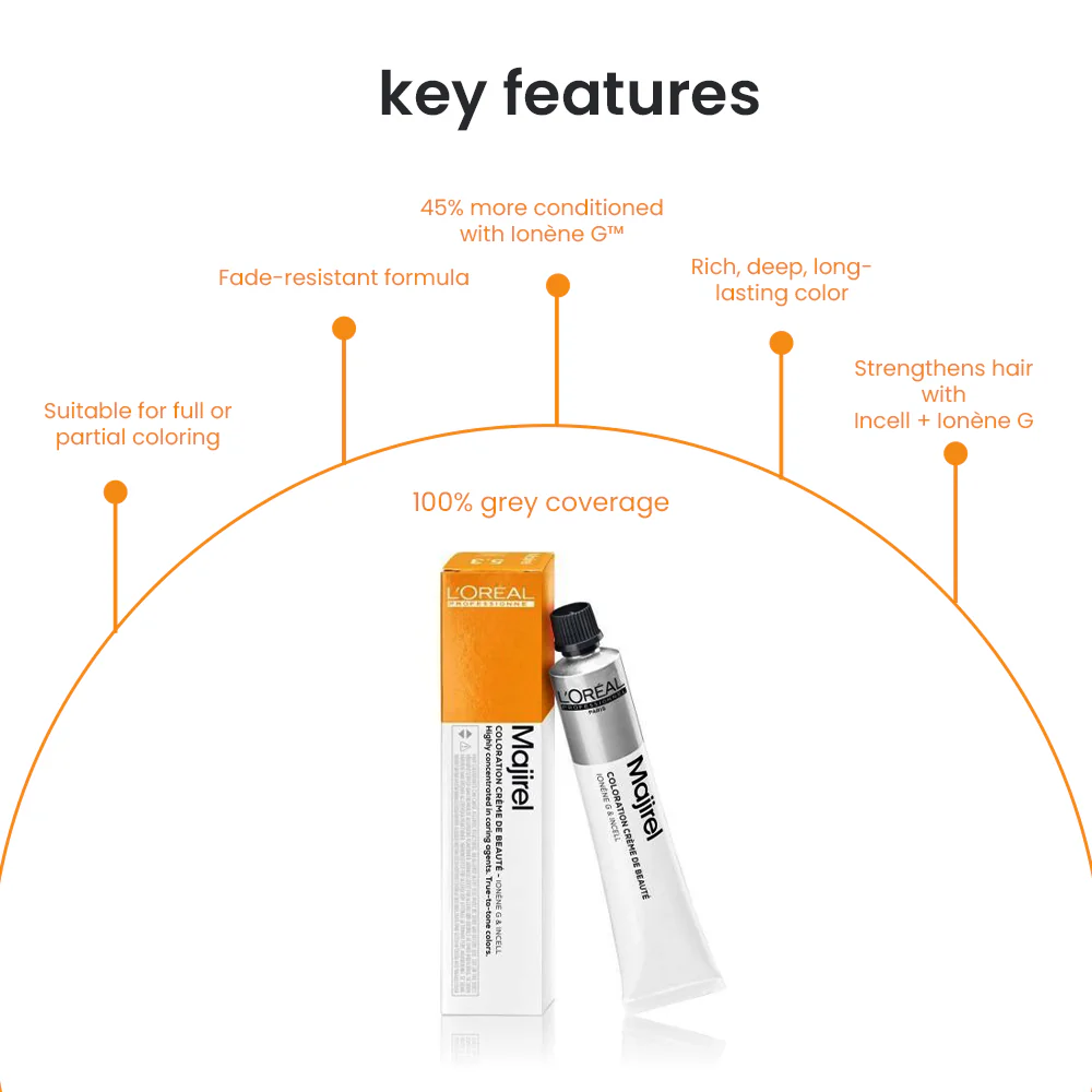 - Wide Color Palette – Explore endless shades with Majirel Absolu to suit every style and personality.