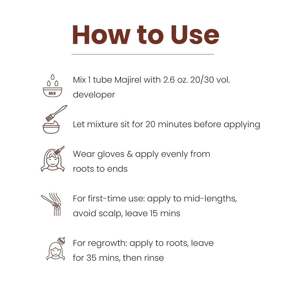 🔹 Mix L’Oréal Majirel 5.35 with L’Oréal Professionnel Oxydant Creme Developer in a 1:1.5 ratio.