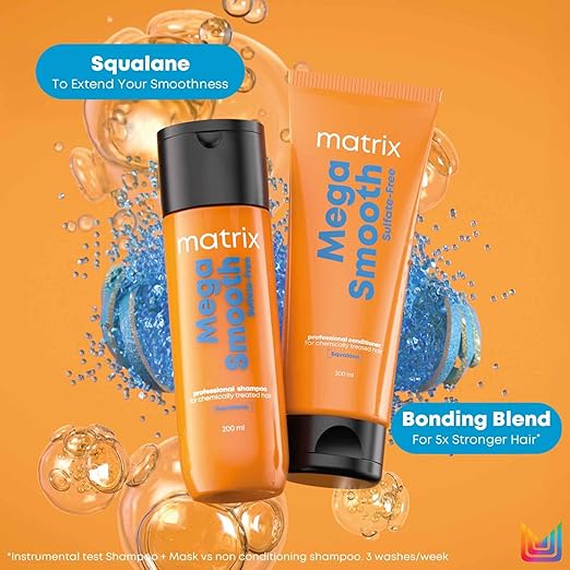 Matrix Mega Smooth Sulfate Free Shampoo 200ml and Conditioner 100ml Combo Squalane Matrix Mega Smooth Sulfate-Free Shampoo 200ml and Conditioner 100ml Combo [Squalane] Matrix Mega Smooth Sulfate‑Free Shampoo 350ml & Conditioner 250ml Combo [with Squalane]