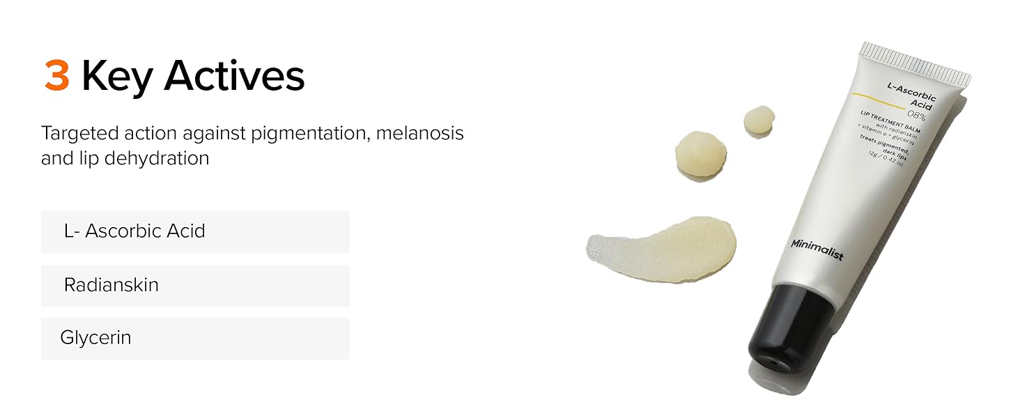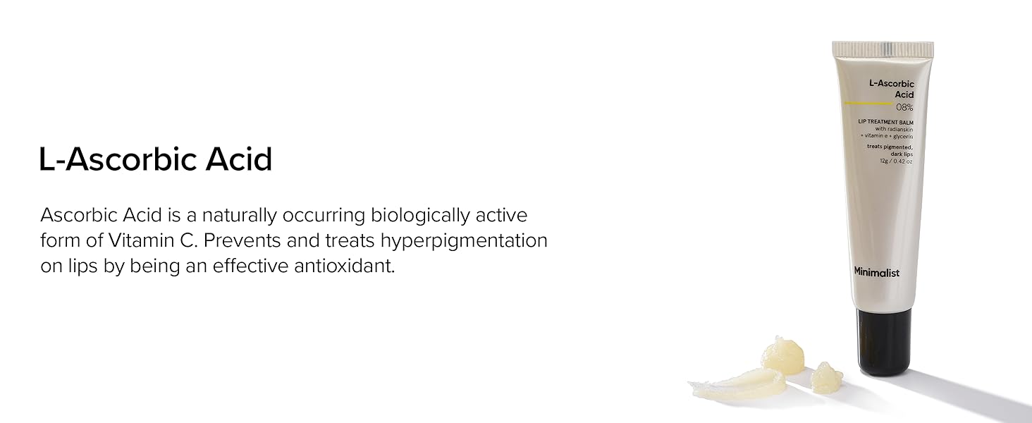 Minimalist Lip Treatment Balm for Pigmented & Dark Lips | 8% L-Ascorbic Acid with Vitamin E, Radianskin & Glycerine | For Women & Men | 12 gm