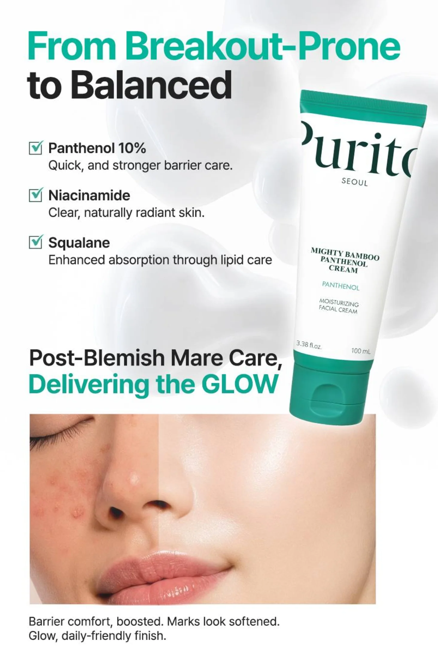 mide: Brightens skin tone and improves texture. Squalane (Sugarcane-derived): Locks in moisture and smooths fine lines. 🌸 Free From: Parabens, Sulfates, Mineral Oil, Artificial Colors, Fragrance, Animal-Derived Ingredients. ✅ Dermatologically Tested | Vegan | Cruelty-Free | Made in Korea Crestora Mighty Bamboo Panthenol Glow Cream | Skin Barrier Repair Moisturizer with Centella, Niacinamide & Squalane | Hydrating, Soothing & Vegan Korean Skincare | 100ml / 3.38 fl.oz