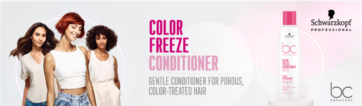 The Schwarzkopf BC Bonacure Color Freeze Conditioner uses a unique acidifying technology to freeze the hair’s structure at its optimal pH level.