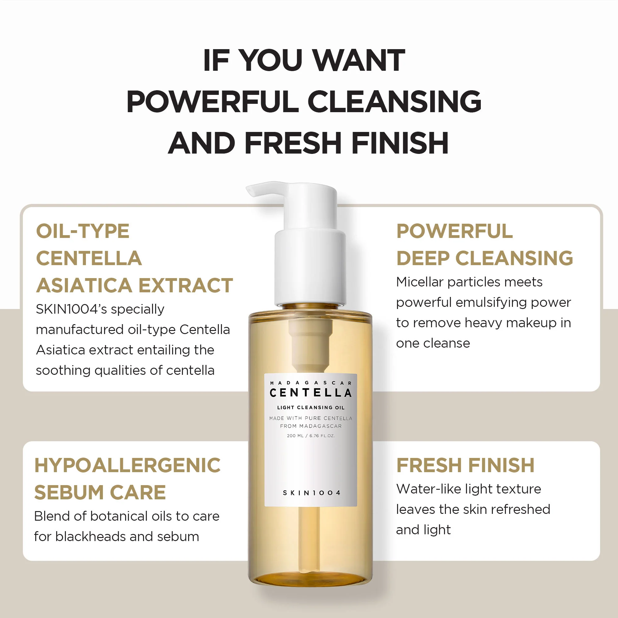 SKIN1004 Madagascar Centella Light Cleansing Oil 200ml | Gentle Oil Cleanser for Face, Korean Facial Cleanser, Double Cleansing
