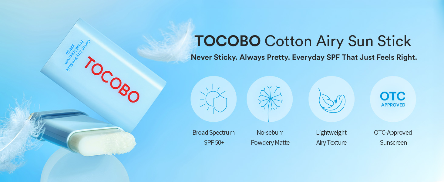 TOCOBO Cotton Soft Sun Stick SPF50+ PA++++ 19g Korean Sunscreen Stick | Matte Finish, Oil Control, Vegan, PEG-Free