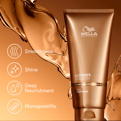 Wella Professionals Ultimate Smooth Conditioner (200 ml) is a premium salon-grade conditioner designed for dry, dull, and frizzy hair. It is powered by an advanced formula enriched with Squalane and Omega-9, which work together to deeply nourish the hair from within while forming a protective layer on the outside.
